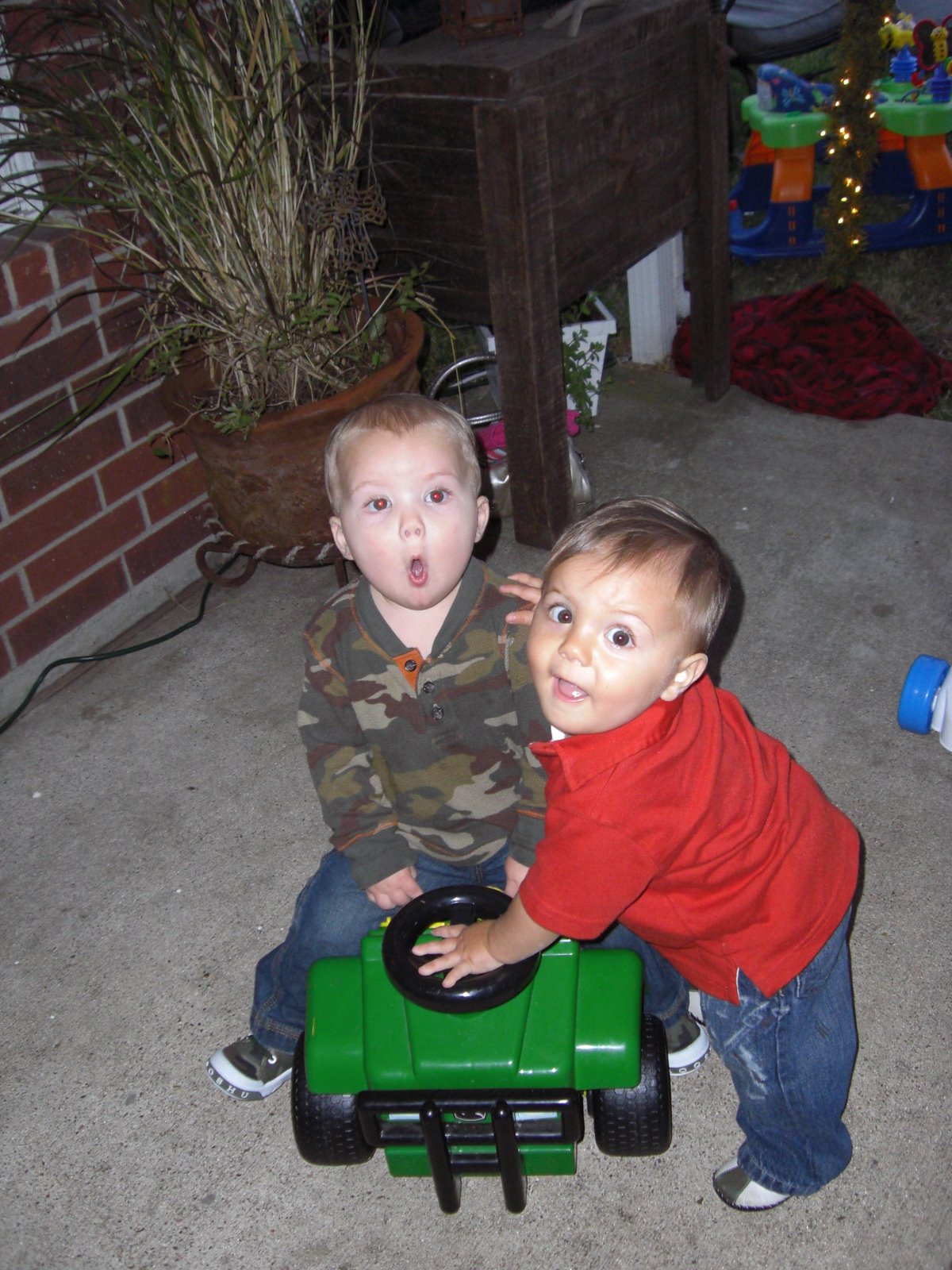 Kegan is showing his friend William how to properly drive a tractor...since he has had so much experience with one...haha! I don't know if William appreciates the help, though. HA!